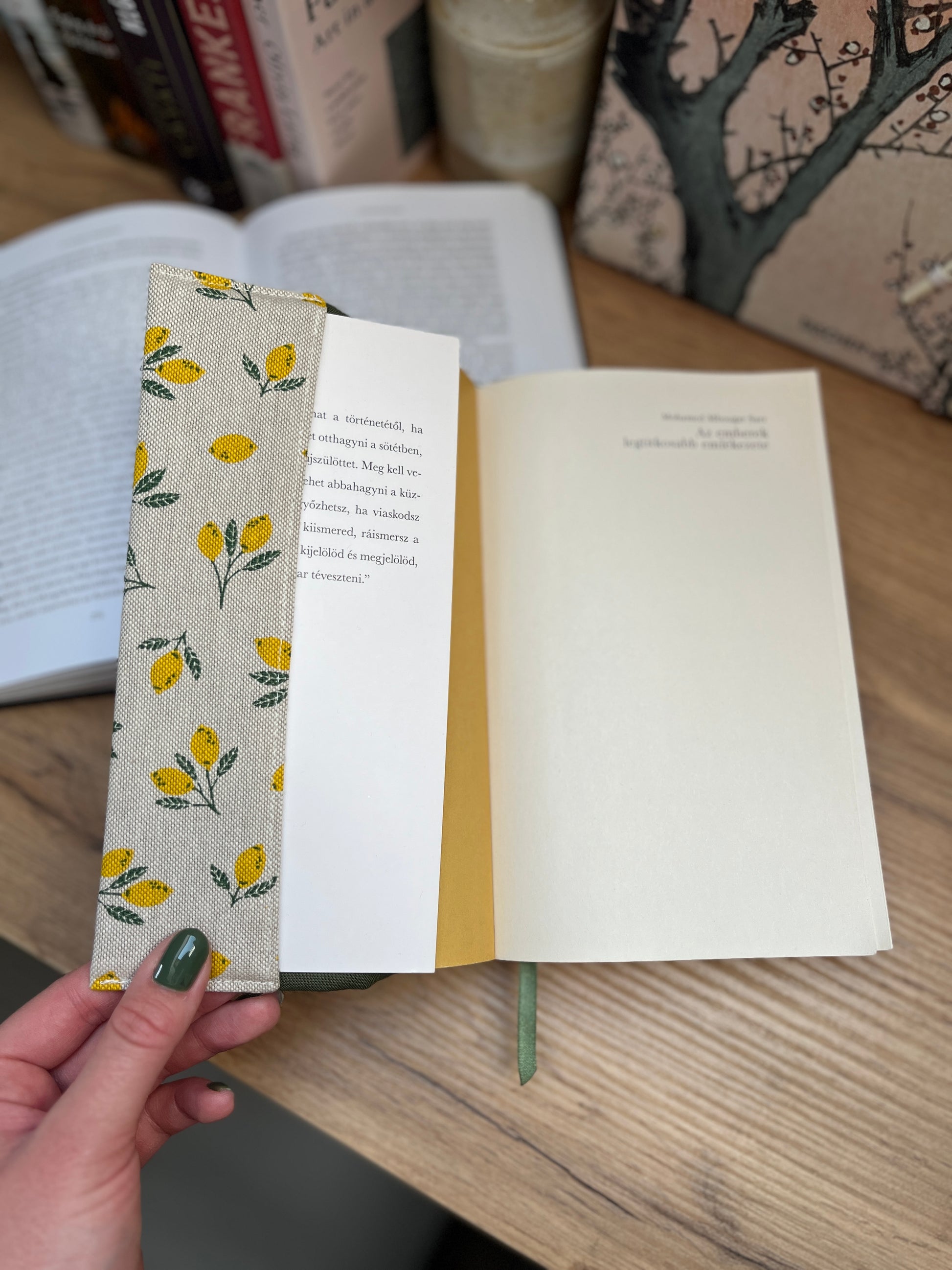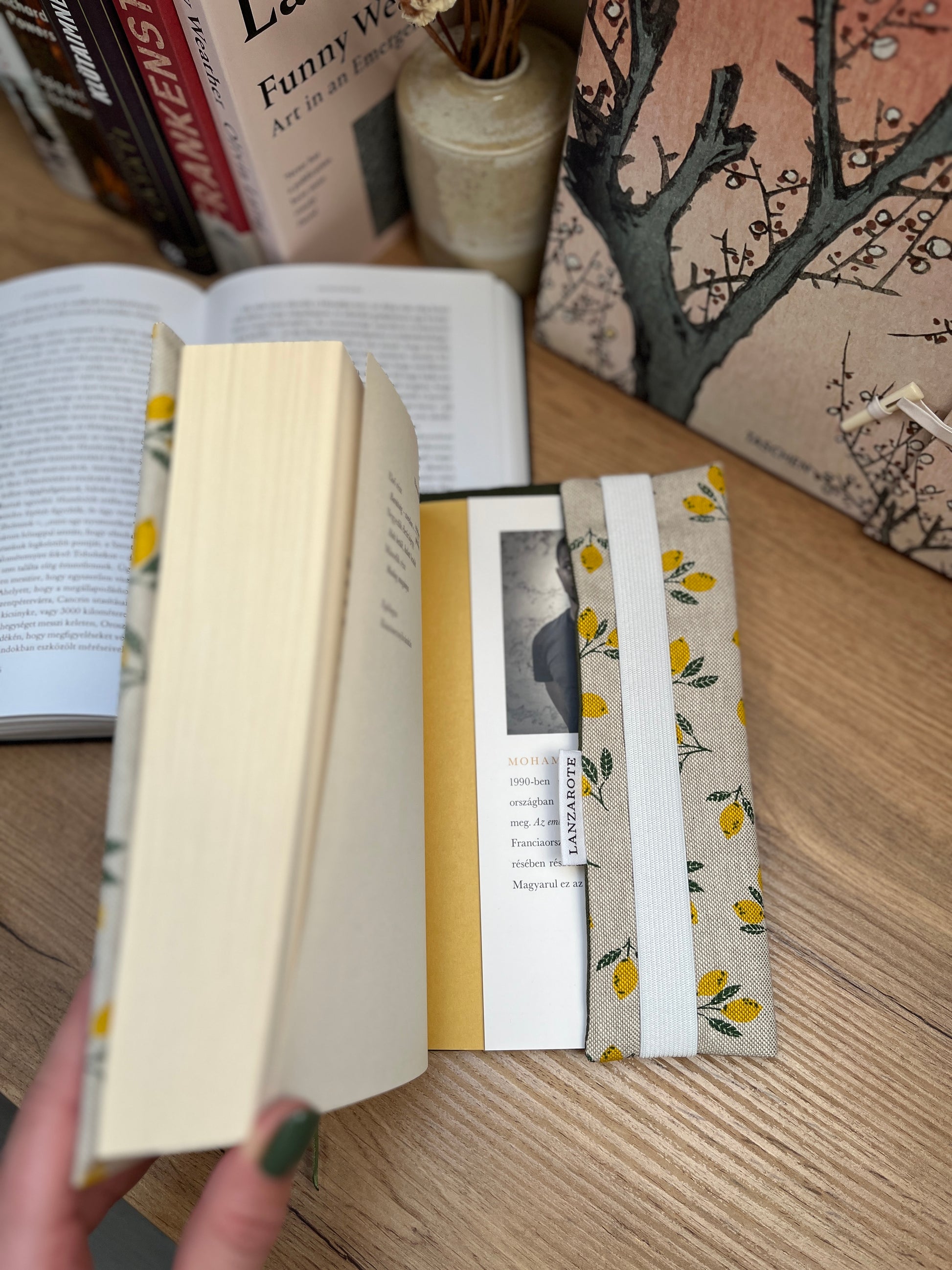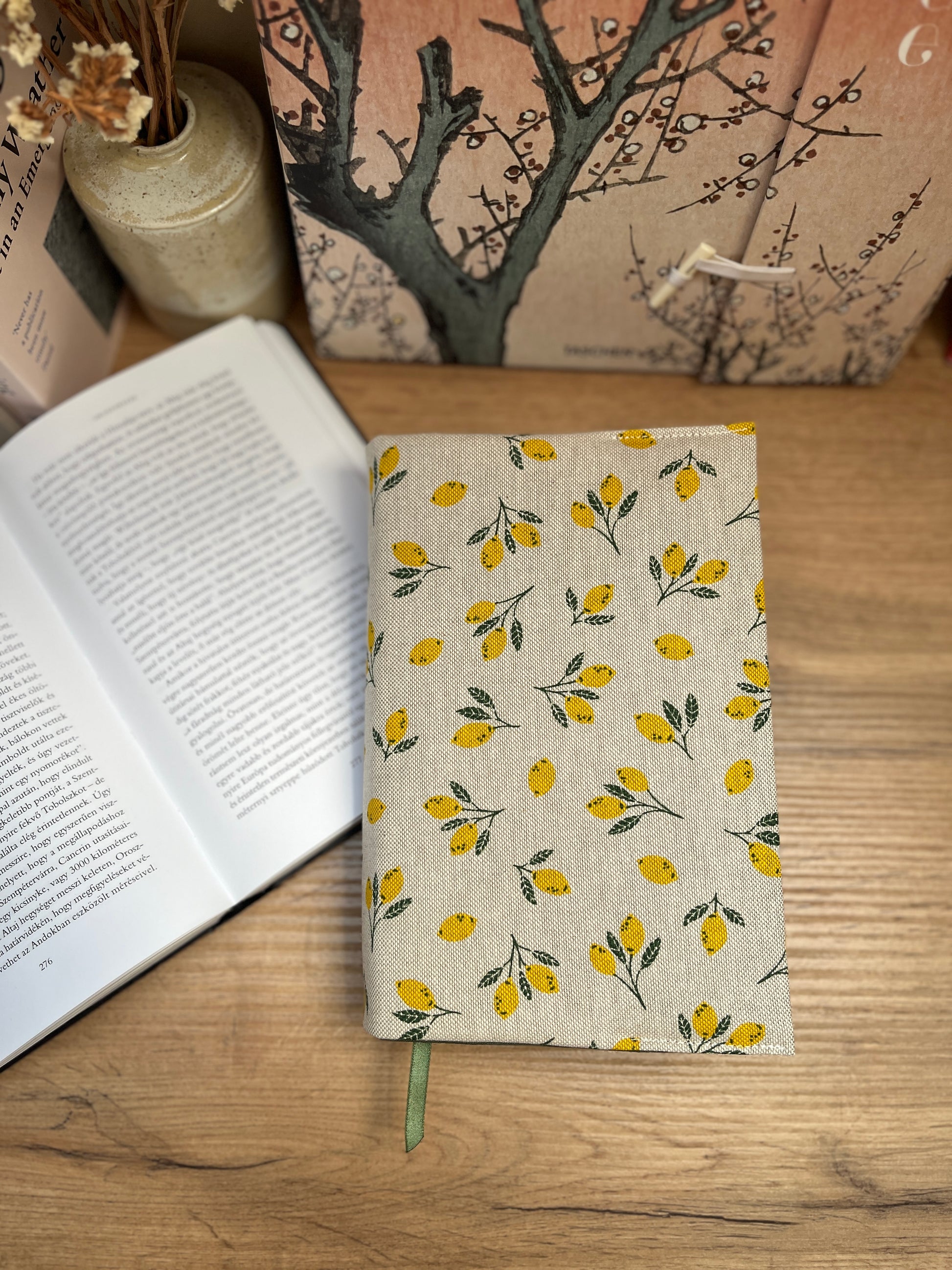 Kis és közepes méretű textil védőborító, puha közbéléssel, könyvjelzővel.