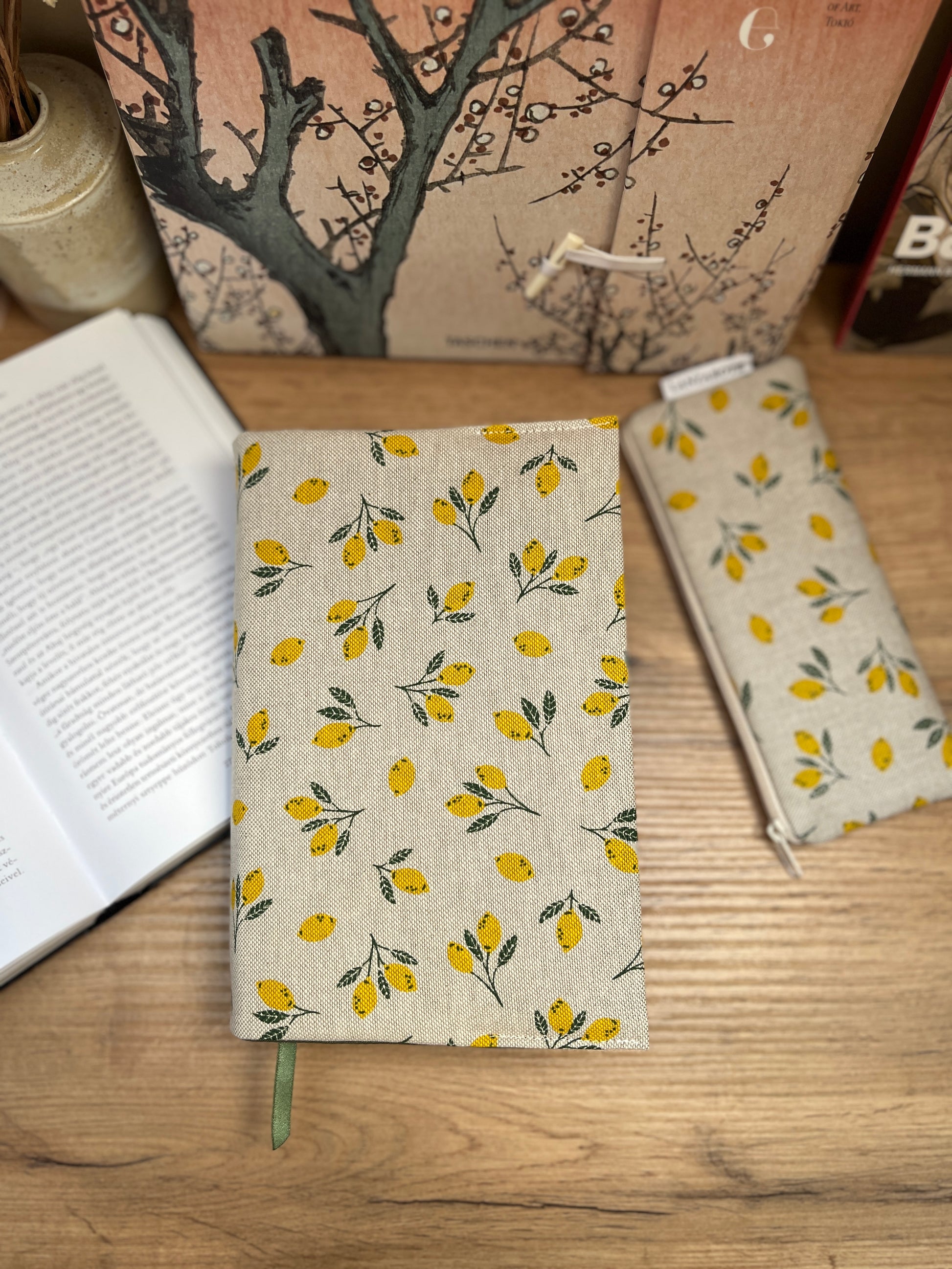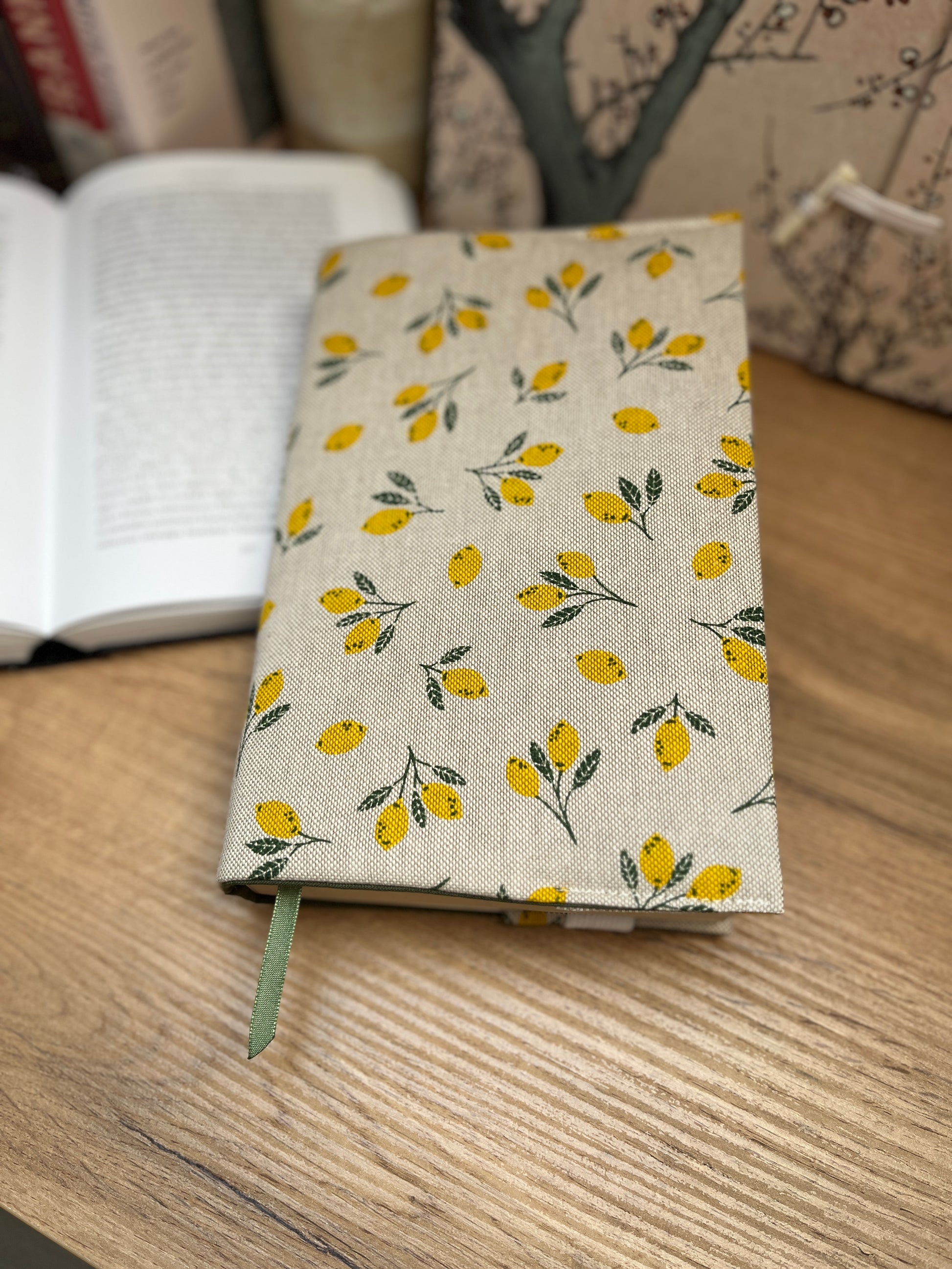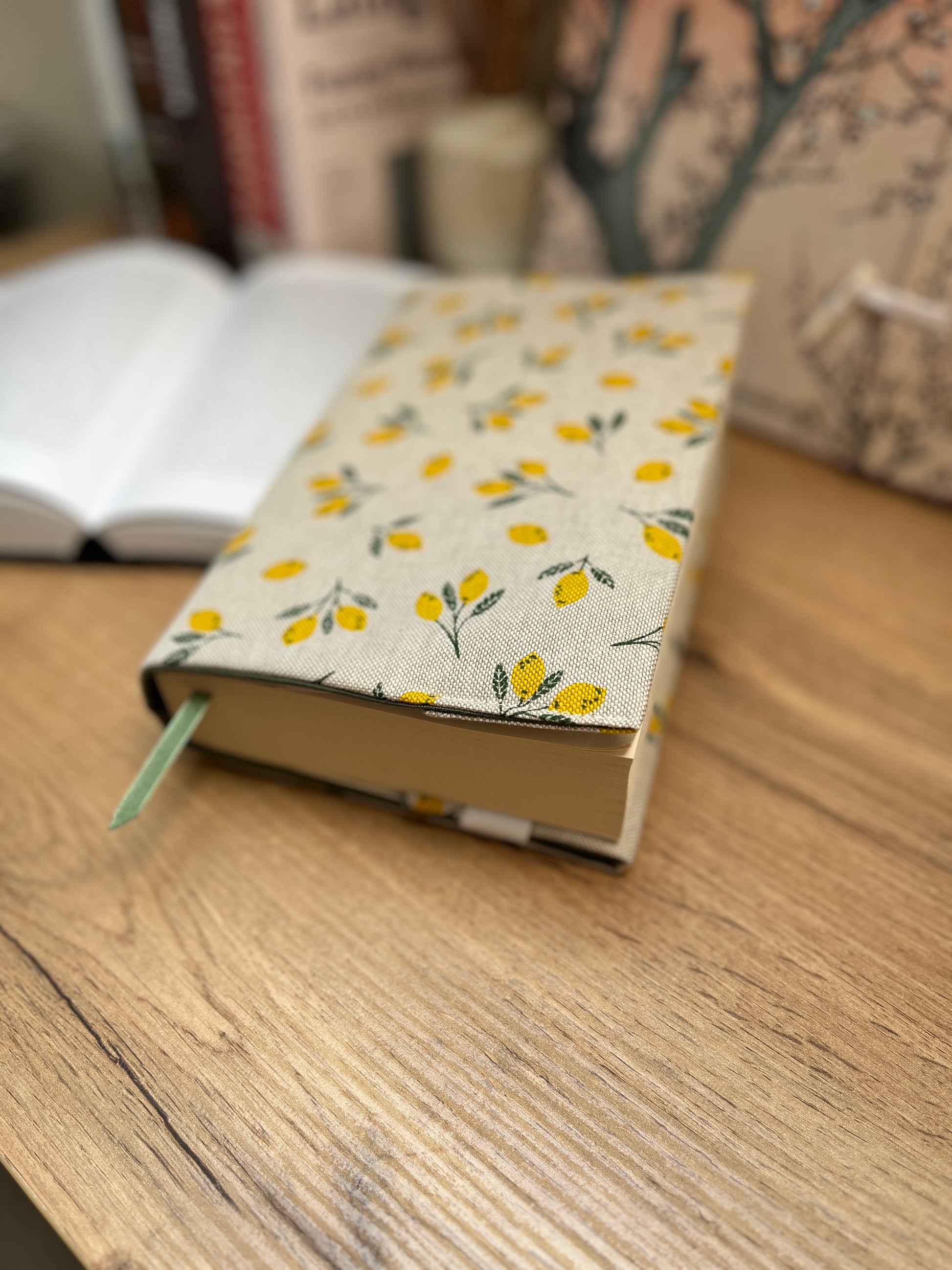 Kis és közepes méretű textil védőborító, puha közbéléssel, könyvjelzővel.