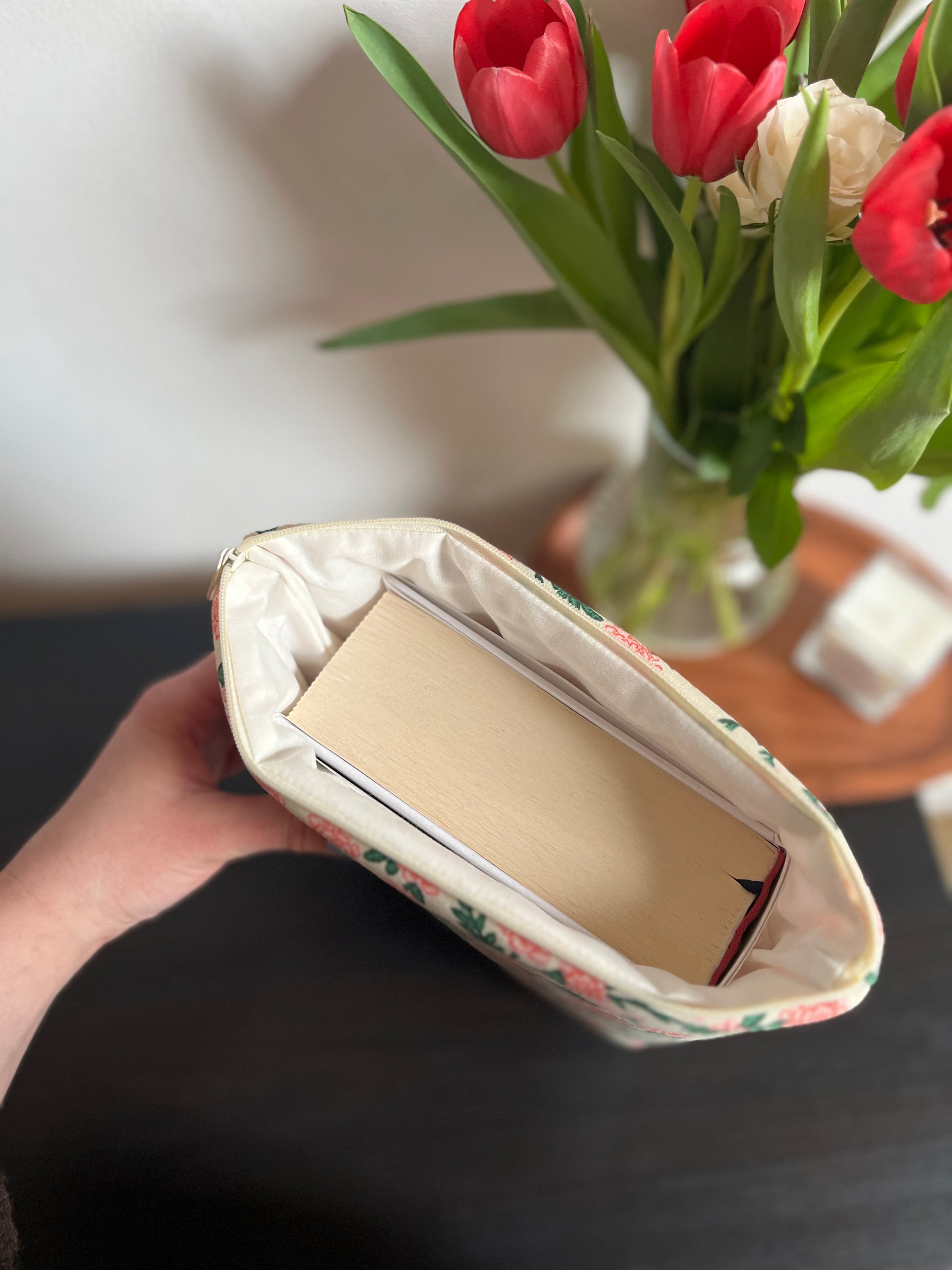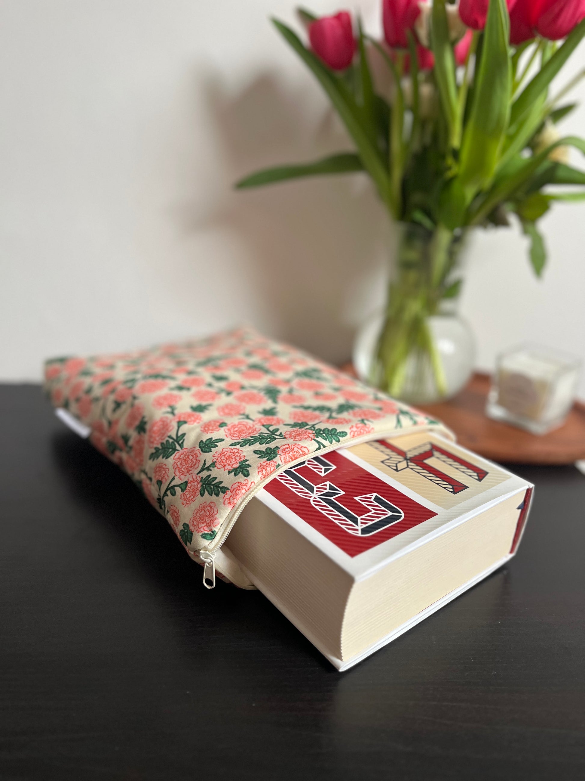 Cipzárral záródó könyvtok, az átlagosnál nagyobb könyvekhez. Zsebbel vagy zseb nélkül is kérhető. :)