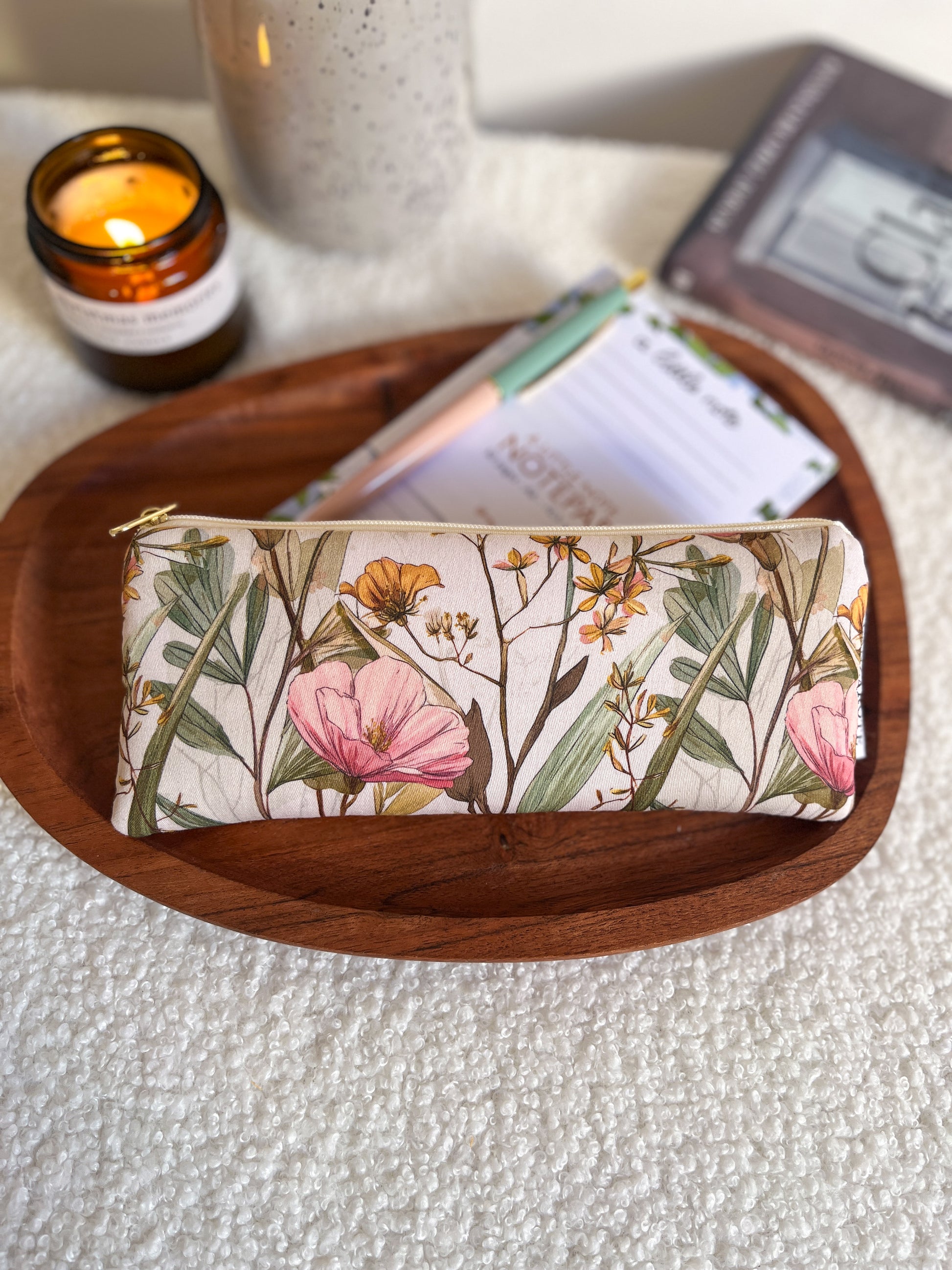 Puha közbéléssel készült cipzáros tolltartó krémszínű pamutvászon béléssel.