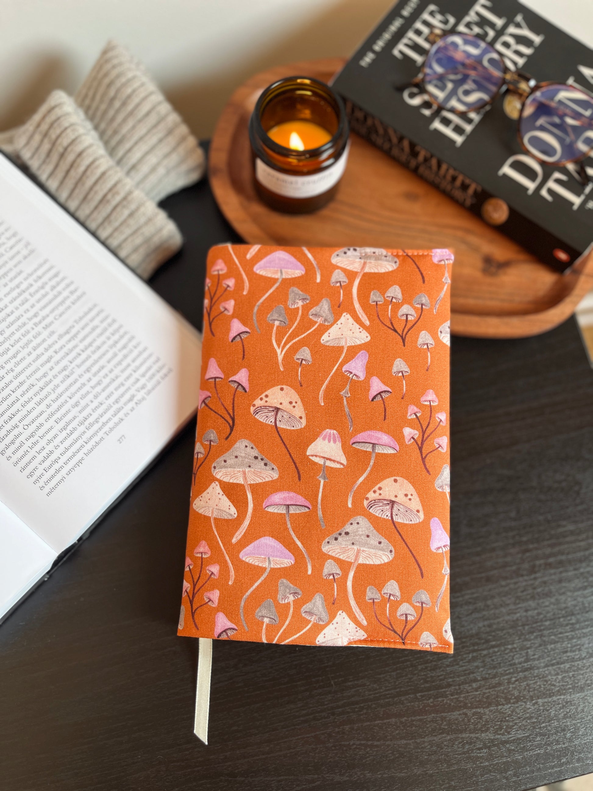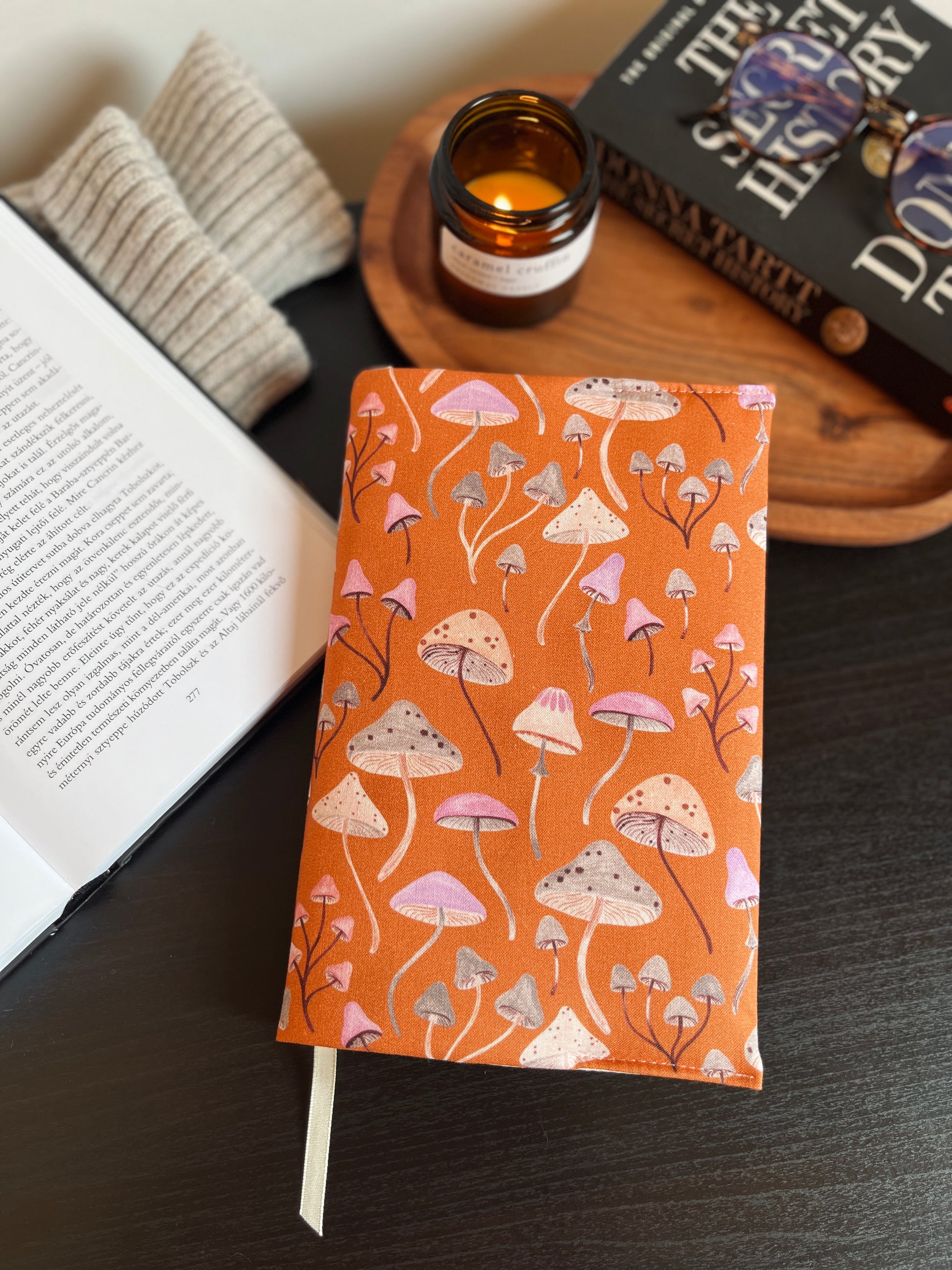Kisméretű textil védőborító, puha közbéléssel, könyvjelzővel.