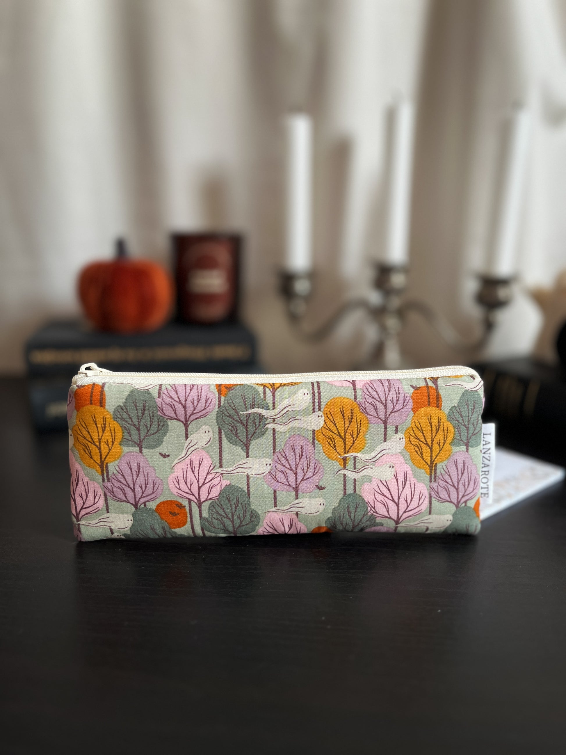 Puha közbéléssel készült cipzáros tolltartó krémszínű pamutvászon béléssel.