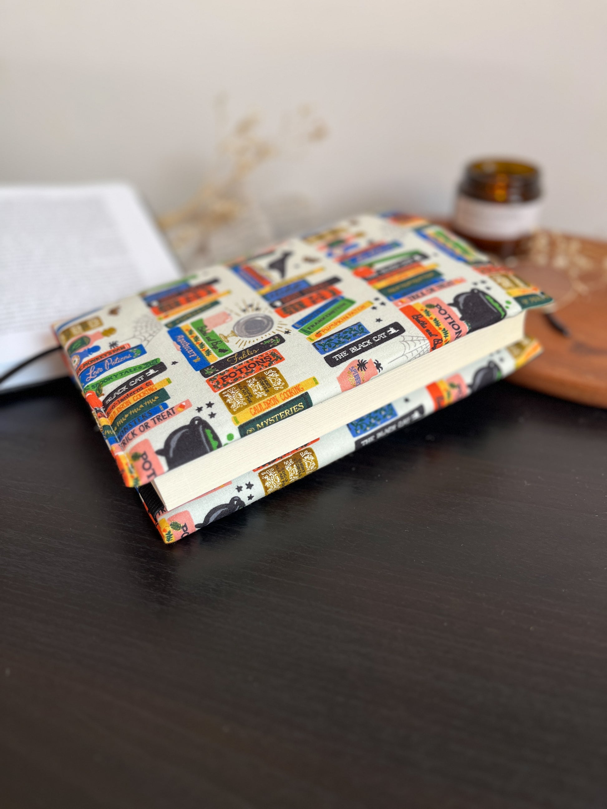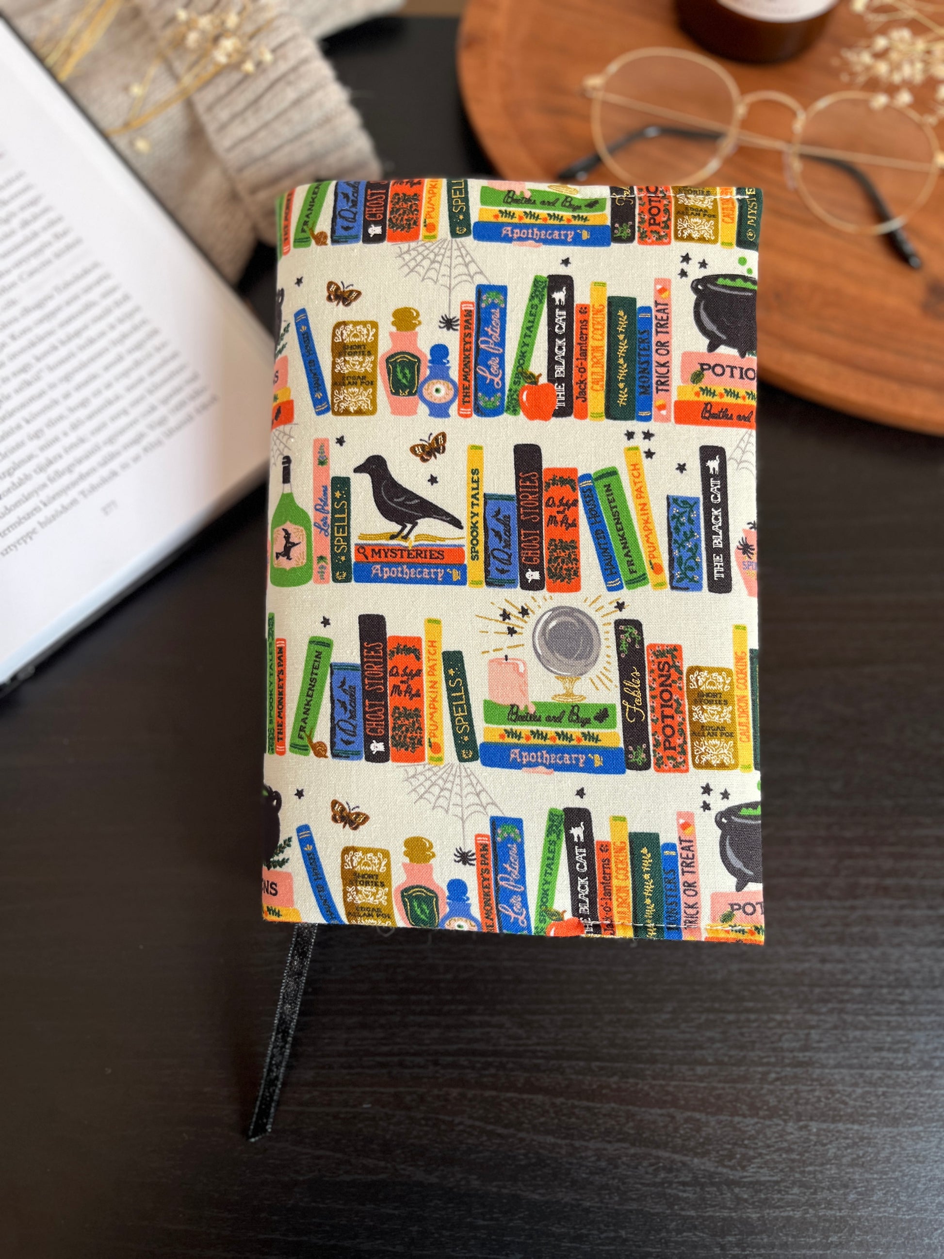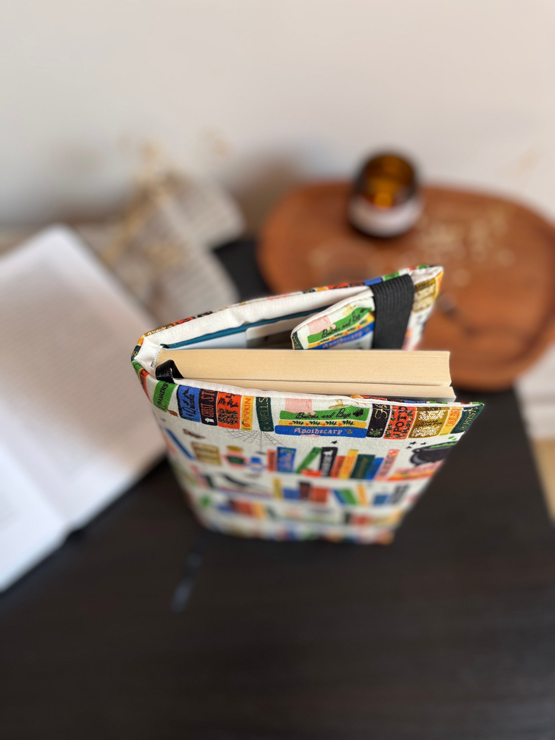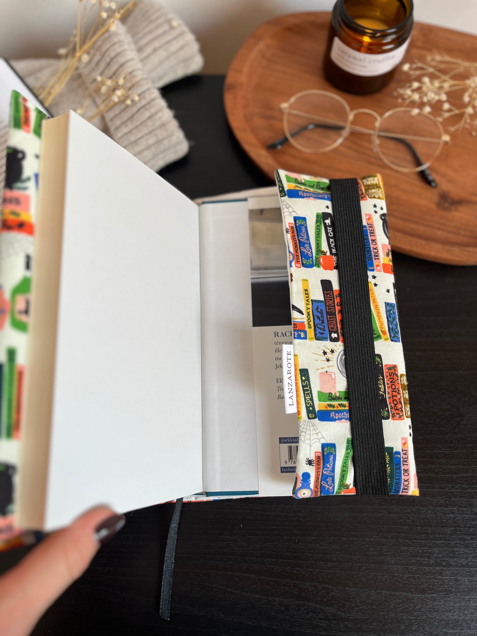 Kis és közepes méretű textil védőborító, puha közbéléssel, könyvjelzővel.