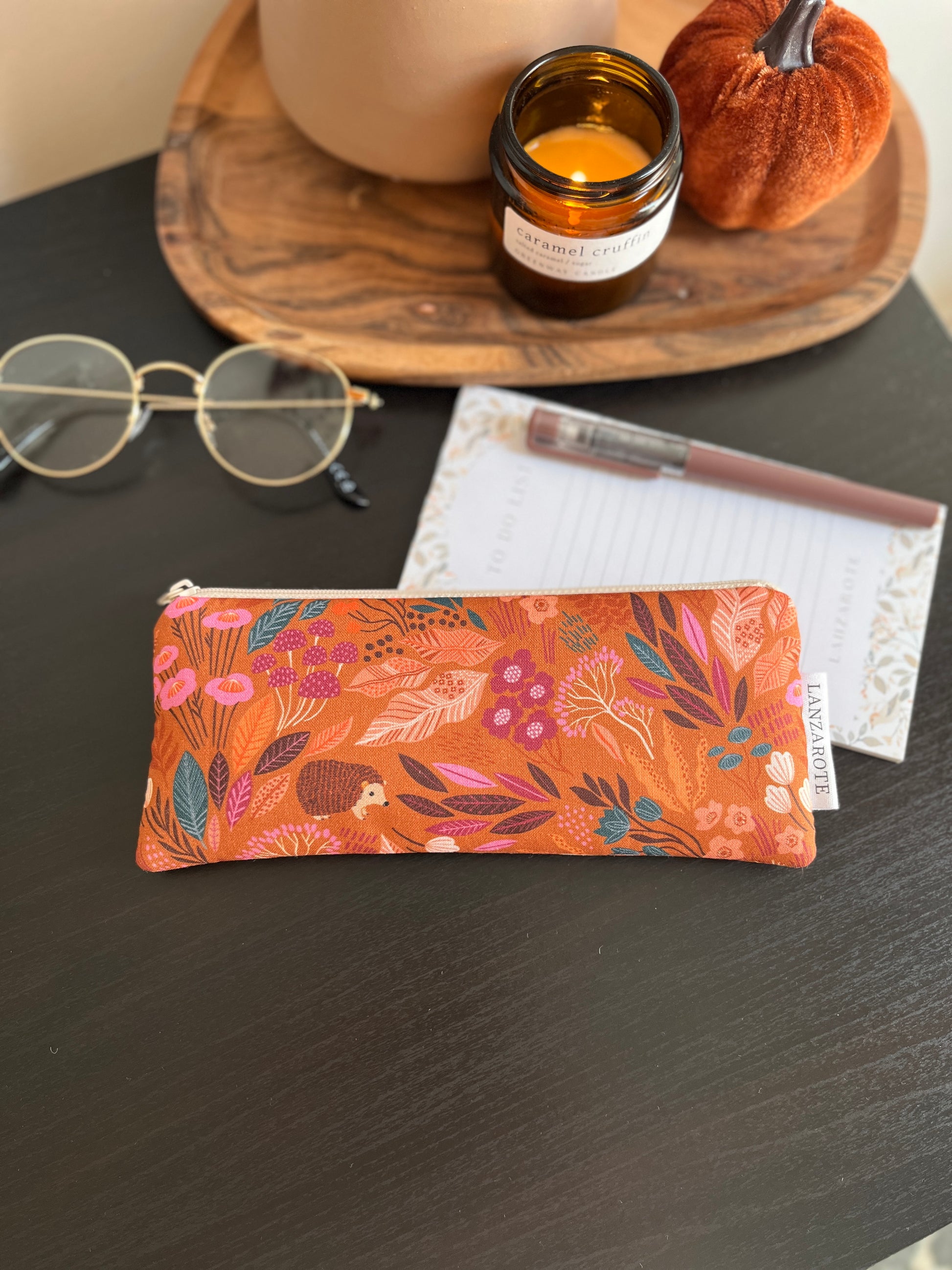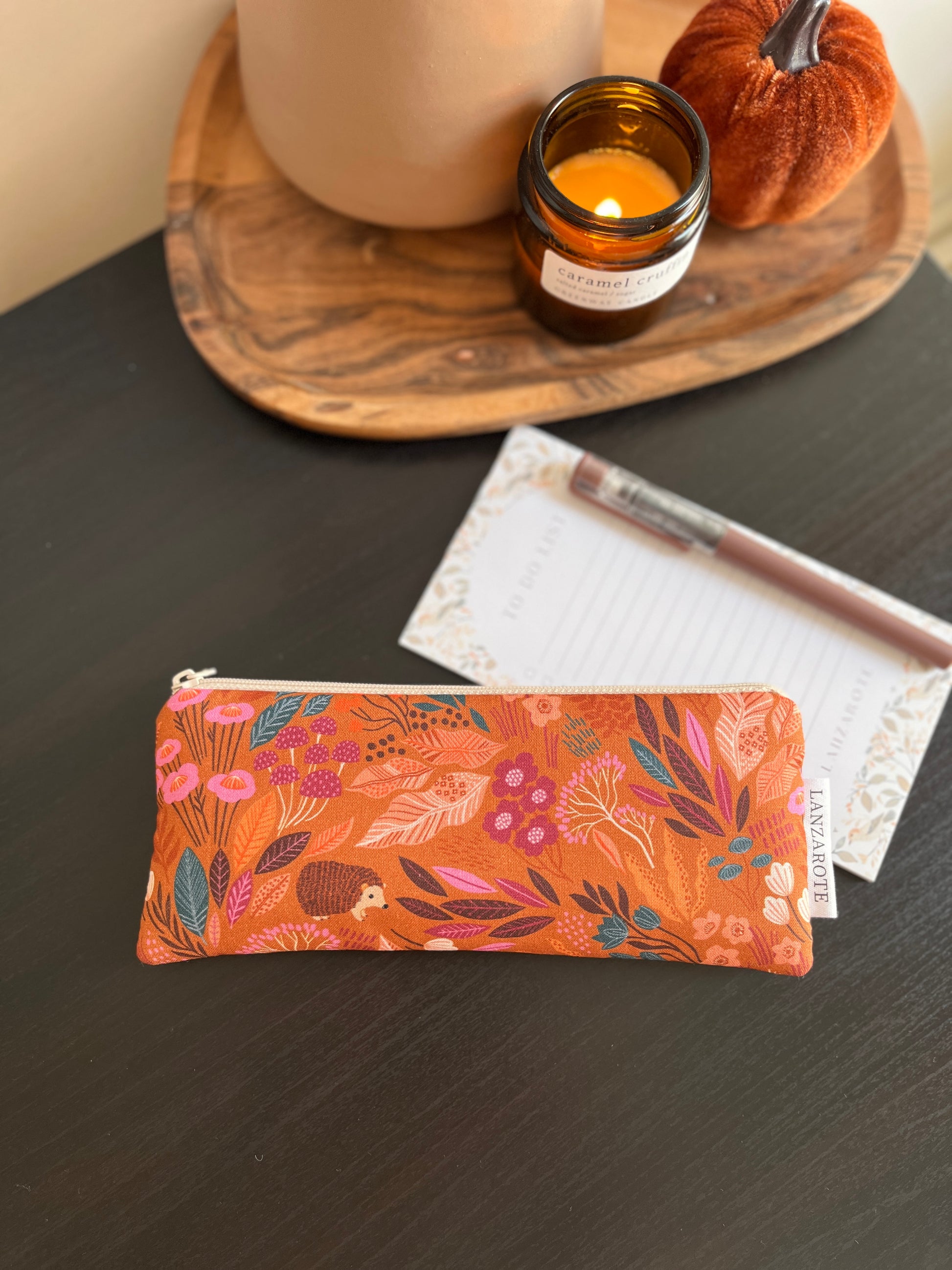 Puha közbéléssel készült cipzáros tolltartó krémszínű pamutvászon béléssel.