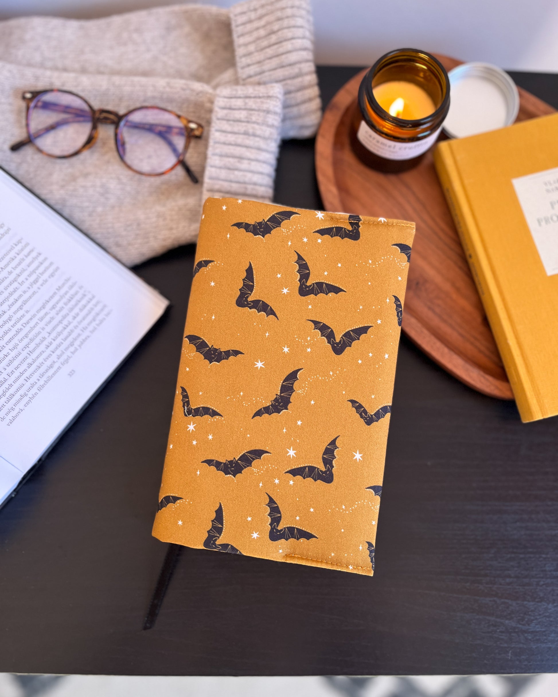 Kis és közepes méretű textil védőborító, puha közbéléssel, könyvjelzővel.