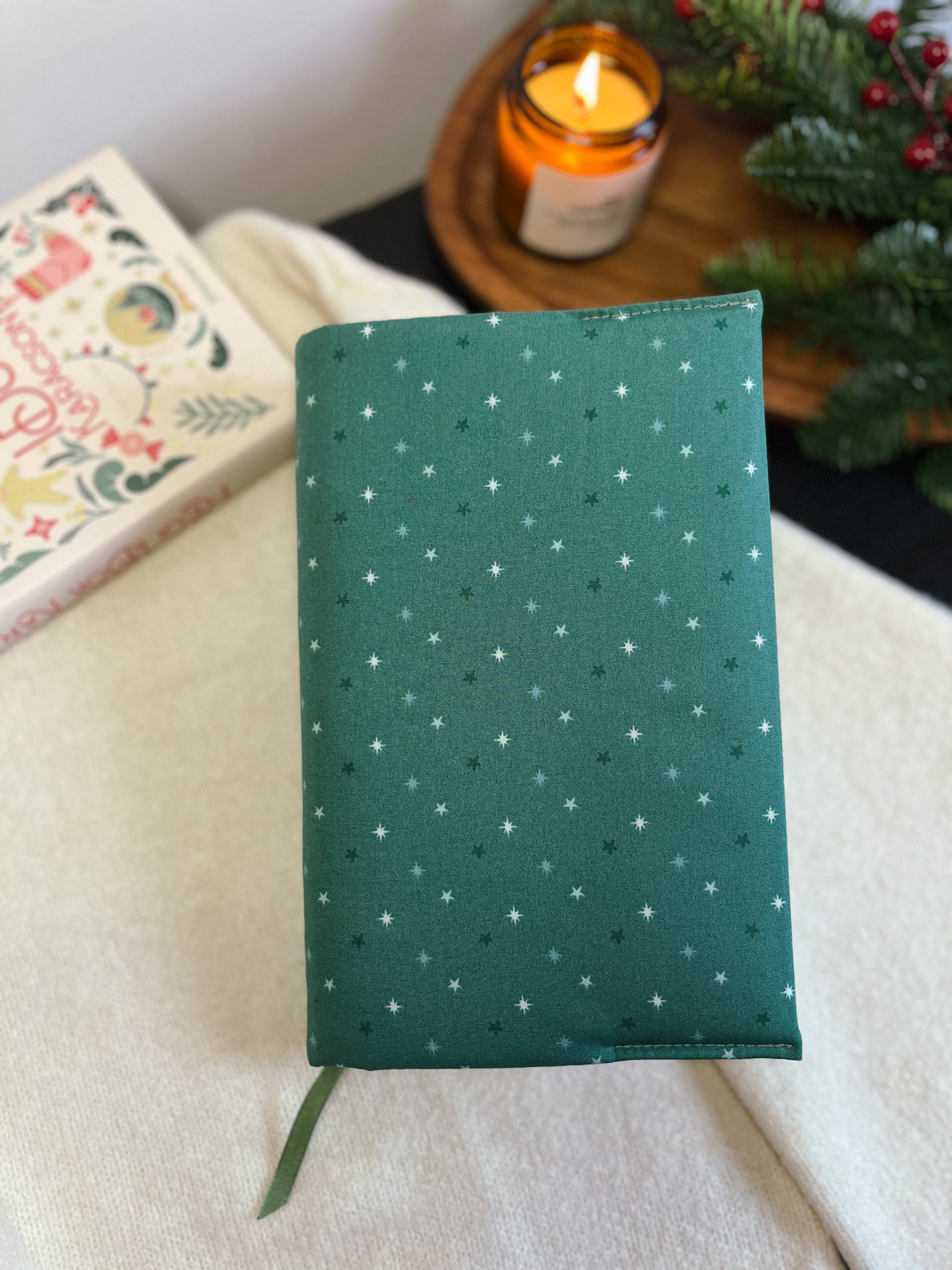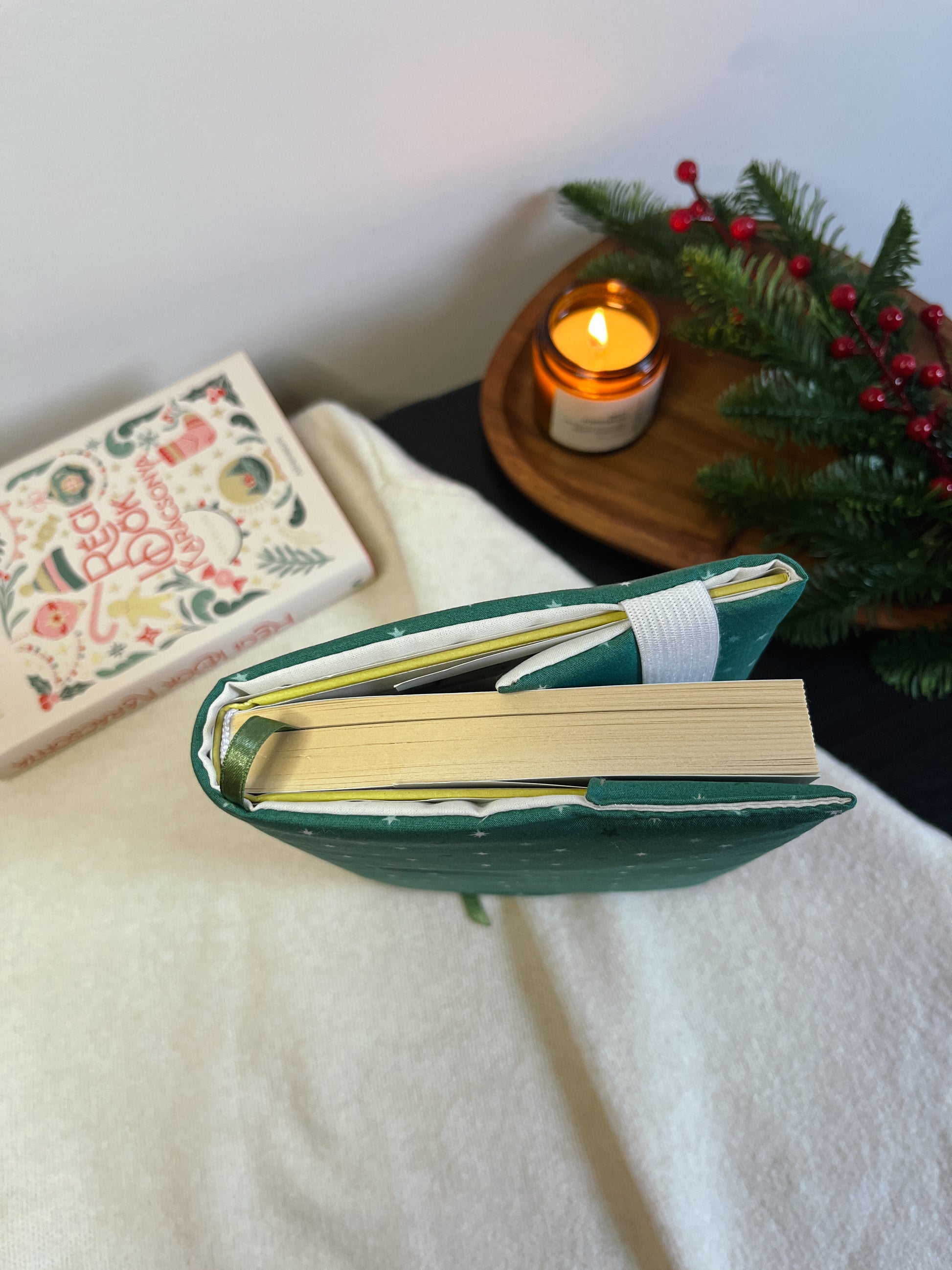 Kisméretű textil védőborító, puha közbéléssel, könyvjelzővel.